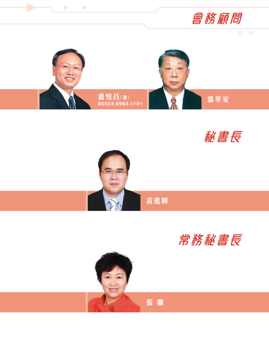 主席兼行政總裁 代表 常務副主席 會長 董事 主席 顧問 永遠名譽會長 永遠名譽主席 永遠名譽會長 常務副主席 |
